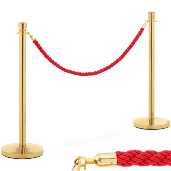 Słupek odgradzający hotelowy złoty z czerwoną liną 150 cm - 2 szt.