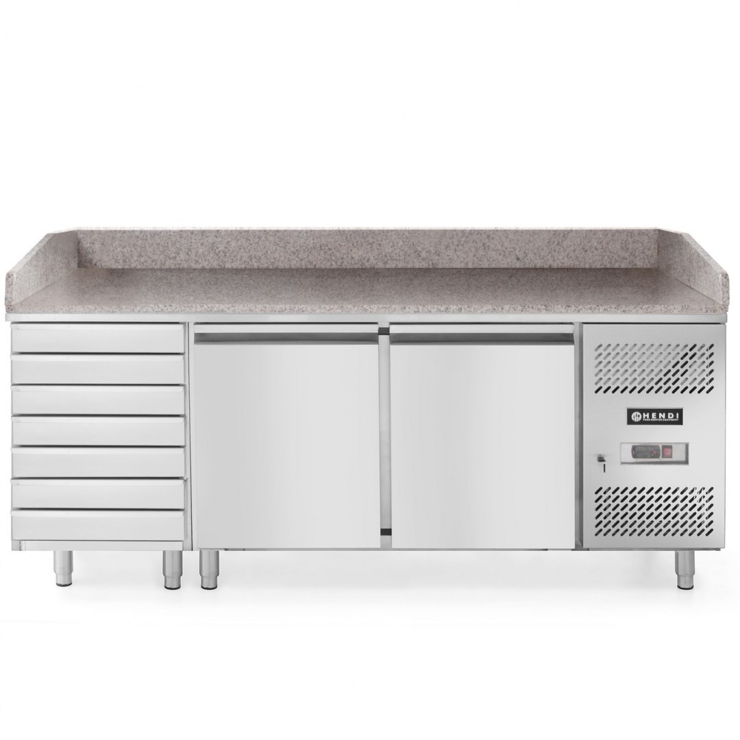 Stół chłodniczy do pizzy 2-drzwiowy z 7 szufladami blat granitowy szer. 202cm - Hendi 232842