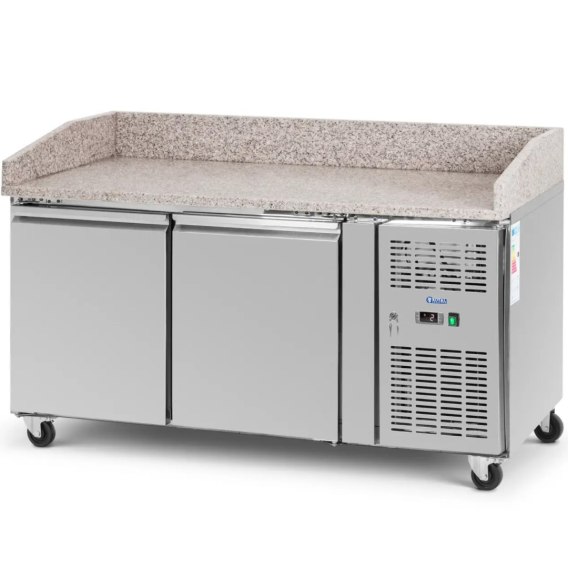 - - Gastronomiczny stół chłodniczy o dużej pojemności 390 l, z 2 komorami i granitowym blatem 155 x 80 cm,