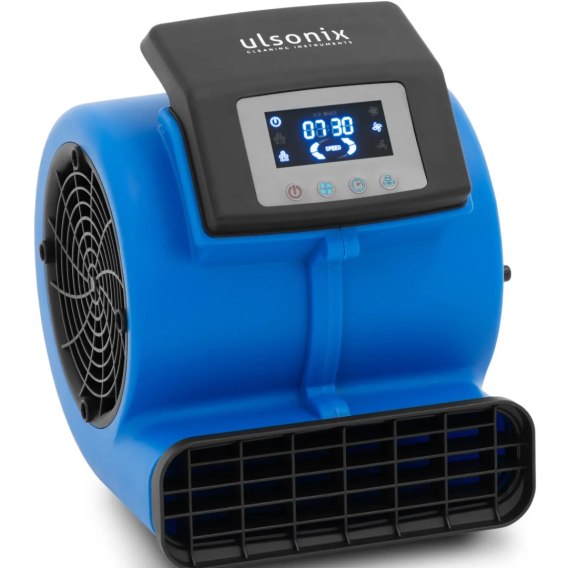 Suszarka do dywanów marki Ulsonix wyposażona została w trzybiegowy wentylator przemysłowy o mocy 135 W i zapewnia ciągły przepływ powietrza przez kilka godzin. Dzięki kompaktowej konstrukcji i zintegrowanemu uchwytowi jest łatwy w transporcie. Za jego pomocą można też błyskawicznie poprawić cyrkulację w słabo wentylowanych pomieszczeniach. Osuszacz tworzy płaski, szeroki strumień powietrza. Oznacza to, że za jej pomocą można idealnie wysuszyć wilgotne podłogi i dywany. Dzięki trzem pozycjom można skierować nawiew powietrza według potrzeb: równolegle do podłogi, pod kątem 45deg; lub 90deg;, na przykład do osuszenia ściany. Dmuchawę do suszenia łatwo obsłużyć za pomocą wyświetlacza LCD. Intuicyjny ekran pozwala ustawić 8-godzinny timer i wybierać żądaną prędkość w zakresie 1080, 1140 i 1290 obr./min. Urządzenie osiąga wydajność 690, 720 lub 780 m³/h. Urządzenie zapewnia umiarkowaną cyrkulację powietrza, wzbogaca je w jony ujemne, a tym samym poprawia jakość atmosfery w pomieszczeniu. Kratki na otworach wlotowych i wylotowych zapewniają bezpieczną obsługę i zapobiegają przypadkowemu dostaniu się rąk lub przedmiotów do urządzenia.