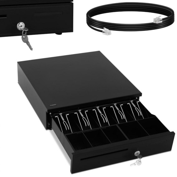 Szuflada kasowa marki Stamony służy do bezpiecznego przechowywania banknotów, potwierdzeń i monet. Sprawdzi się w sklepach, gabinetach usługowych, restauracjach, hotelach, siłowniach, a także na straganach handlowych. Pieniądze uporządkujesz w tacce na monety (3/5 komór) oraz przegrodach na banknoty (5 zacisków). Pojemniki wykonano z trwałego tworzywa ABS. Połączenie z kasą fiskalną / komputerem / drukarką odbywa się za pomocą 100-centymetrowego przewodu z końcówką RJ-11. Dzięki niemu możliwe jest otwieranie szuflady za pomocą urządzenia zewnętrznego oraz skuteczne jej zablokowanie. W razie potrzeby można zrobić to także ręcznie (2 klucze w zestawie). Obudowa została wykonana ze stali o ściankach grubości 1 mm. Konstrukcja dzięki 4 nóżkom jest bardzo stabilna.