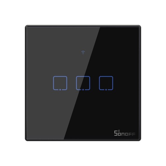 Sonoff T3EU3C-TX jest to dotykowy inteligentny włącznik światła, sterowany bezprzewodowo przez Wi-Fi i RF 433 MHz. Może na raz kontrolować trzy obwody oświetleniowe w domu. Pozwala na indywidualne włączanie i wyłączanie światła oraz ustawianie harmonogramów pracy lamp.