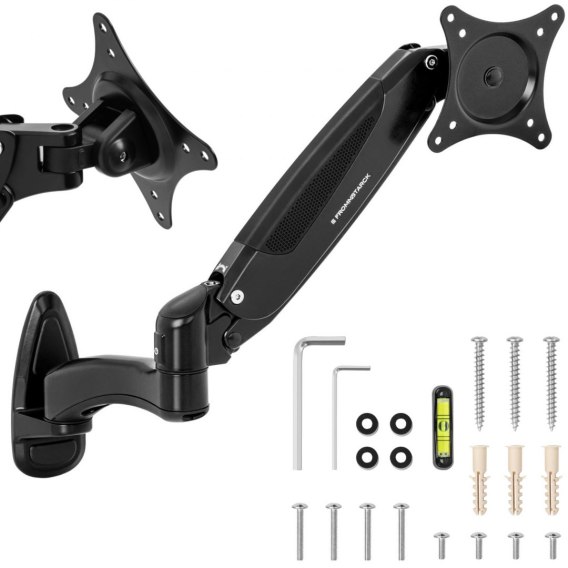 Uchwyt biurkowy do monitora marki Fromm & Starck pozwala na zamontowanie ekranu lub telewizora na ścianie w standardzie VESA 75/100. Pasuje do szerokiej gamy monitorów (od 15 do 27''). Uchwyt posiada funkcję nachylenia od -90 do 84 oraz opcję obrotu ramienia do 180. Dzięki zastosowanemu siłownikowi wygodnie dobrać odpowiedni kąt. Łatwość użytkowania zapewnia obrotowa głowica (360). Wysokiej jakości aluminium pozwala na instalację monitorów o masie do 8 kilogramów.