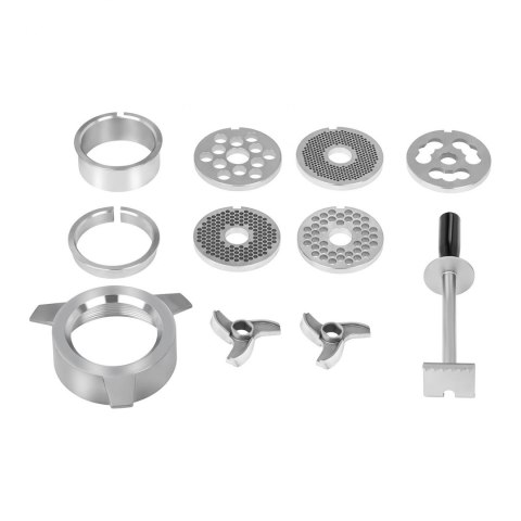 - - Praktyczność - w komplecie 5 sitek (otwory 0*, 3, 5, 9, 16 mm) 2 noże i popychacz (0* mm - nieregularny kształt),
