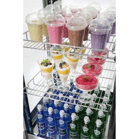 Witryna chłodnicza na kółkach, 3-półkowa o pojemności 400L marki Arktic to urządzenie zaprojektowane z myślą o cukierniach, piekarniach, kawiarniach czy barach sałatkowych lub kanapkowych. Ułatwia ekspozycje żywności przy jednoczesnym zachowaniu odpowiedniej dla niego temperatury.