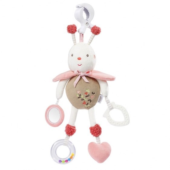 Zawieszka, maskotka edukacyjna, Pszczółka z kolekcji: Ogród Marzeń Słodka Pszczółka to prawdziwa uczta dla Twojego maluszka! Dzwoneczek o delikatnym dźwięku, bezpieczne lusterko, mały gryzak, który przyniesie ulgę na etapie ząbkowania oraz grzechotka z tęczowymi perełkami, na pewno zainteresuje Twojego maluszka. Pszczółkę, za pomocą praktycznego klipsa można zamontować w dowolnym miejscu. W dolnej części wita nas aksamitne w dotyku, serduszko, które po naciśnięciu delikatnie popiskuje. Różowe skrzydełka szeleszczą w dotyku. Śmieszne czułki można pociągać. Różne wzory, kontrastujące kolory i zróżnicowane powierzchnie zachęcają do odkrywania, chwytania i ściskania, co rozwija zdolności poznawcze. W okrągłym bezpiecznym lusterku Twoje dziecko może się przeglądać, co wzbudza dodatkową ciekawość. Z zachowaniem wielkiej dbałości o szczegóły, pszczółka oferuje wszystko, co sprawia, że dziecięce serduszka biją szybciej. Pomaga zrozumieć świat, w ciągu dnia i wieczorami przed snem. Wykonana jest z wielu, miłych w dotyku, materiałów. Rozwija logiczne myślenie, koncentrację, małą motorykę. Wzbudza ciekawość i stymuluje percepcję dziecka. Gryzaczek łagodzi ból podczas ząbkowania. Grzechotka, dzwoneczek, szeleszczący papier i bezpieczne lusterko, wyzwalają chęć zabawy. Zawiera klips do zawieszenia na łóżeczku, wózku, nosidełku itp. Można prać. Rozmiar: 37 cm. Wszystkie zabawki niemieckiej marki FEHN są bezpieczne dla dzieci od 0 lat. Wykonane są z najlepszej jakości materiałów. Spełniają normy EN71, CE, badane w instytutach Stiftung Warentest lub Ökotest. 68252