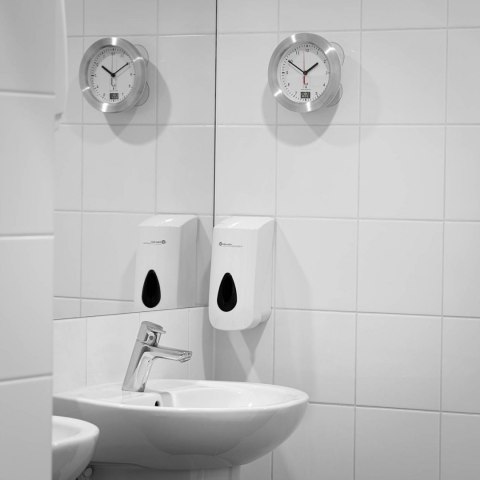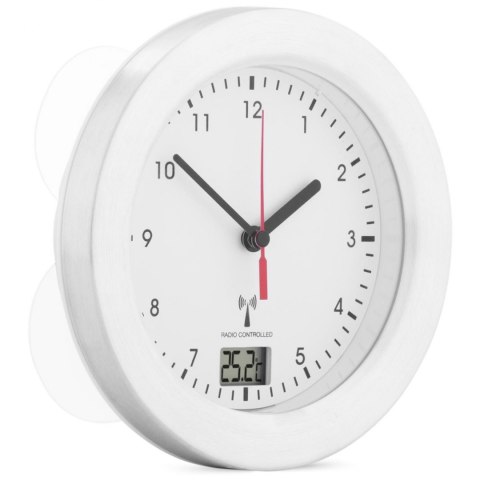 • Zegar ścienny radiowy okrągły do łazienki ze wskaźnikiem temperatury śr. 17 cm - 4 PRZYSSAWKI