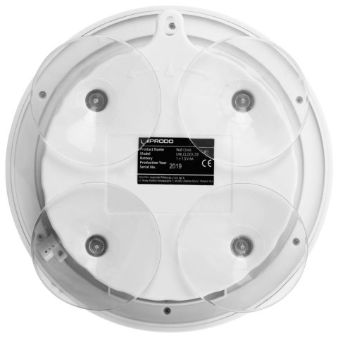 Zegar ścienny marki Uniprodo to elegancki i funkcjonalny sprzęt. Montaż jest bardzo prosty - możesz użyć do tego celu4 gumowych przyssawek, oczka do zawieszania lub skorzystać ze stojaka, który znajdziesz w zestawie. Jego dekoracyjny wygląd to zasługa szklanej przedniej szybki o grubości 2 mm oraz obudowy z aluminium i ABS. Klasyczne kolory będą pasować do każdego wnętrza. Ochrona IP55 pozwala na użytkowanie sprzętu w pomieszczeniach mokrych takich jak łazienki, baseny lub sauny. Zegar został wyposażony w cyfrowy wyświetlacz pozwalający na odczyt temperatury otoczenia w stopniach Celsjusza. Zegar ścienny jest zasilany baterią 1,5 V AA (Mignon / LR6 - brak w zestawie). Dzięki synchronizacji z sygnałem czasowym za pomocą odbiornika DCF77 (którego docelowy zasięg wynosi 2000 km wokół Frankfurtu) zegar automatycznie przełącza się na czas zimowy / letni. Sprzętu nie można ręcznie przystosować do innej strefy czasowej.