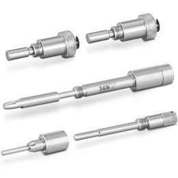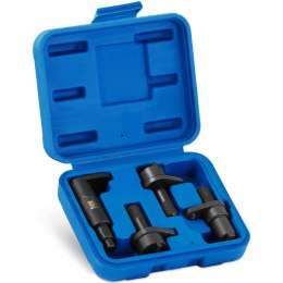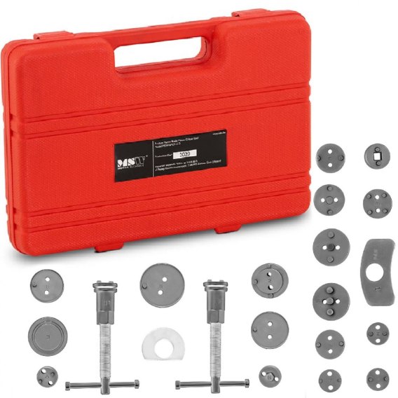 Zestaw do wciskania tłoczków hamulcowych MSW jest niezbędny podczas napraw układu hamulcowego w pojazdach osobowych i ciężarowych z tarczami hamulcowymi. Pasuje do aut różnych marek. Zestaw zawiera 21 elementów. Oprócz adapterów znajdują się w nim dwie prasy - prawoskrętna i lewoskrętna. Sprzęt wykonano z wysokiej jakości stali węglowej o dużej twardości.