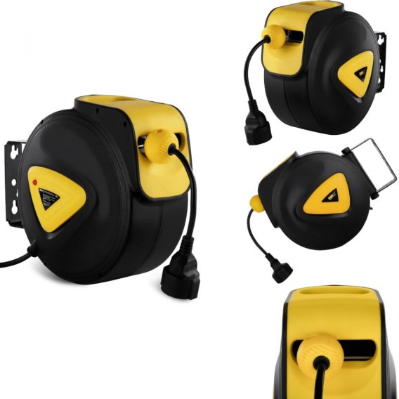 Automatyczny bęben kablowy niemieckiej marki MSW, przeznaczony jest do zwiększania zasięgu przewodzenia energii elektrycznej. Jego kompaktowe rozmiary i niewielka waga pozwalają na wygodne użytkowanie w domowym zaciszu. Świetnie sprawdzi się również w małych garażach czy warsztatach. Tym bardziej że dołączone do zestawu kołki rozporowe oraz konstrukcja wspornika umożliwiają szybkie zamontowanie bębna na ścianie (zalecana wysokość 80 cm) lub suficie. Sprężynowy mechanizm z zatrzaskiem ułatwia rozwijanie 15-metrowego kabla przewodzącego prąd o napięciu 230 V i częstotliwości 50 Hz. Pozycje blokujące są rozmieszczone z częstotliwością od 2 do 3 na każdy metr, a napędzany sprężynowo wąż zwija się bardzo szybko i bez ryzyka poplątania. Szczelna obudowa chroni zarówno kable przed uszkodzeniami zewnętrznymi, jak i również użytkownika przed porażeniem prądem. Dodatkowo konstrukcja wspornika umożliwia obrót bębna na lewą lub prawą stronę.